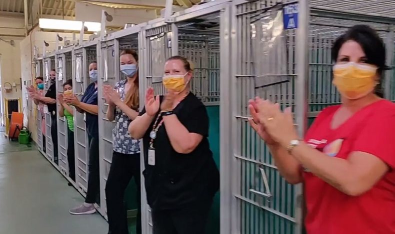 Su Facebook è stato condiviso un video che vede i responsabili prendere posto in ciascuna delle gabbie aperte, applaudendo all’unisono per la loro gioia.