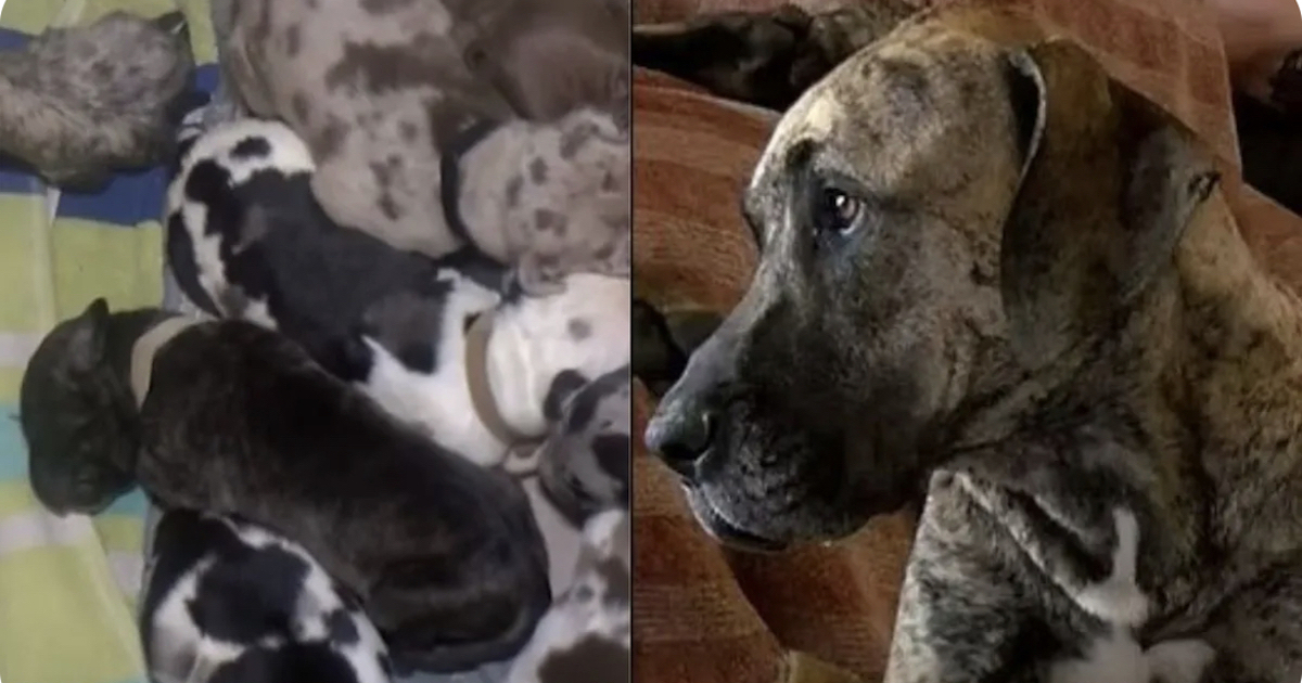 Cagnolina Namina è una Gran Danese che vive con la sua padrona in Virginia. La grande cagnolona è diventata mamma e ha dato alla luce ben 21 cuccioli con un parto record durato ben 27 ore. Era il 22 marzo quando questa dolce cucciolona ha deciso di superare tutti i record visti fino in questo momento in tutto il mondo e dare alla luce ben 21 piccoli con un travaglio che anche secondo la CNN è stato estremamente lungo e faticosa per la mammina. La padrona durante tutto quel tempo in cui la Gran Danese faceva nascere i suoi cuccioli, non l’ha mai lasciata sola. 21 cagnolini appena nati, di cui 2, purtroppo, hanno perso la vita subito dopo la nascita, rimanendo in 19 a fare compagnia a mamma Namina. Un parto inaspettato che ha colto anche la padrona del cane di sorpresa.