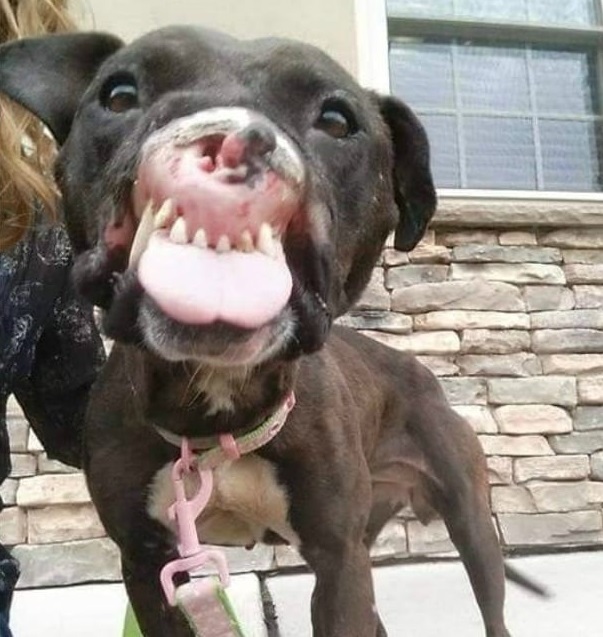 Cane da combattimento perde il naso, ora dona sorrisi alle persone