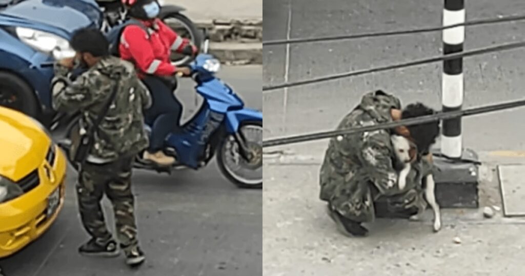 Cucciolo abbraccia il suo amato padrone che al semaforo non è riuscito ad ottenere molte monete (VIDEO)
