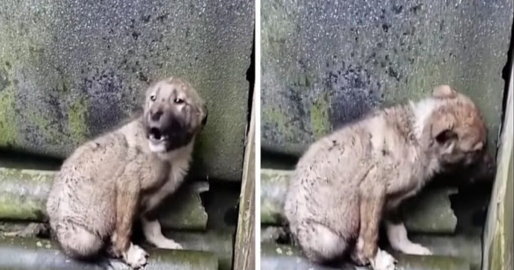 Cucciolo di cane congelato dopo essere stato gettato in strada durante una notte piovosa