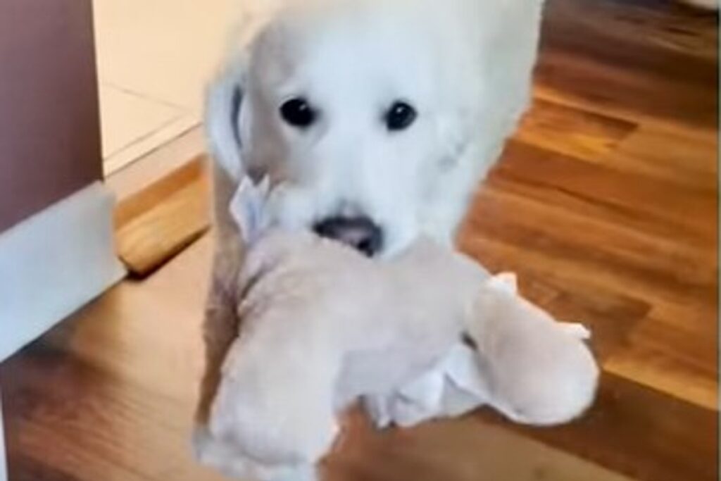 Stella è una splendida Golden Retriever di colore bianco. Adora tantissimo la sua famiglia e la sua sorellina della stessa razza. Tuttavia, malgrado i numerosissimi giocattoli e le altrettante comodità, c’è una cosa per cui Stella impazzisce e questa è il suo orsacchiotto.