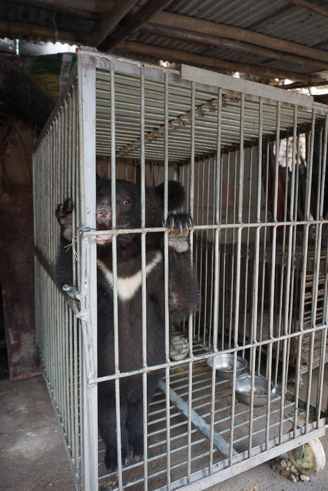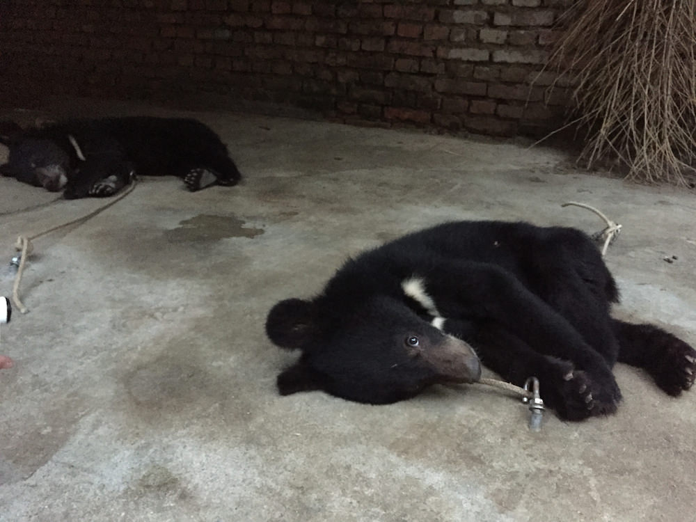L’investigatore della PETA ha documentato che i cuccioli di orso vengono legati o incatenati ad un muro e sono costretti a stare dritti, a volte per ore, per addestrarli a camminare sulle zampe posteriori. Se non riescono a stare in piedi da soli, possono finire strangolati e impiccati dalle loro stesse catene.